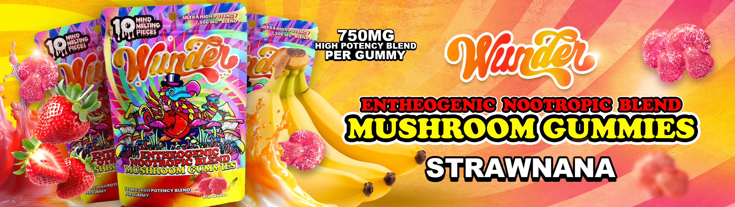Wunder Mushroom Gummies (7500mg 10ct Pouch)Regular price $26.95Regular priceUnit price / per-