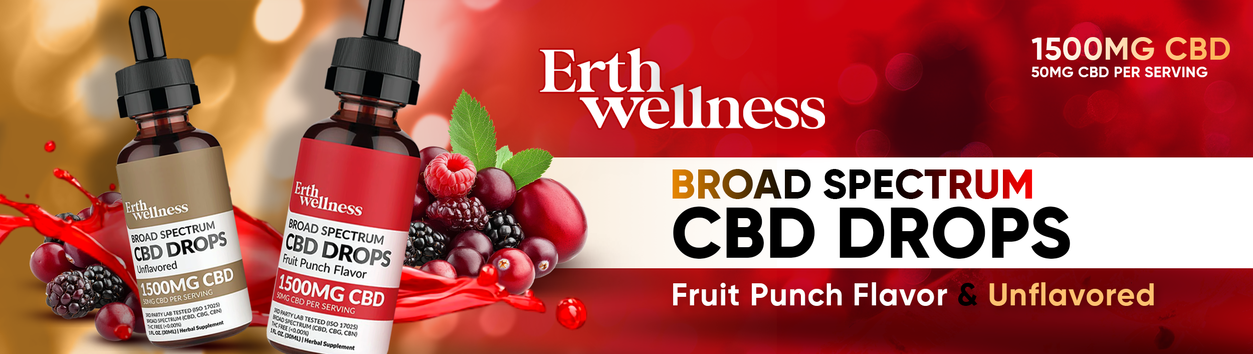 ERTH CBD Broad Spectrum Tincture CBD + CBG + CBN Drops (THC Free)(3.7mL)